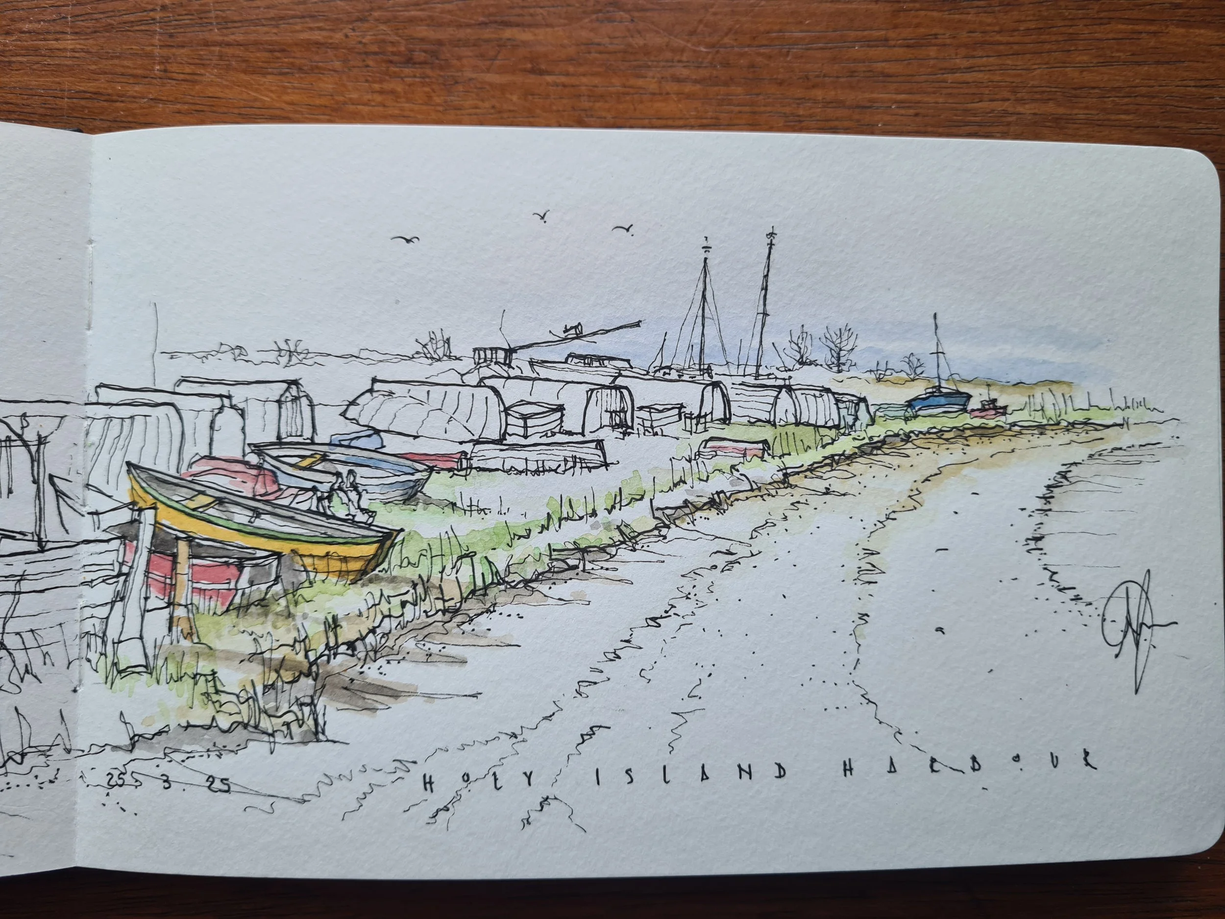 The upturned boats on Holy Island, reused as stores forming whale like structures on the beach
